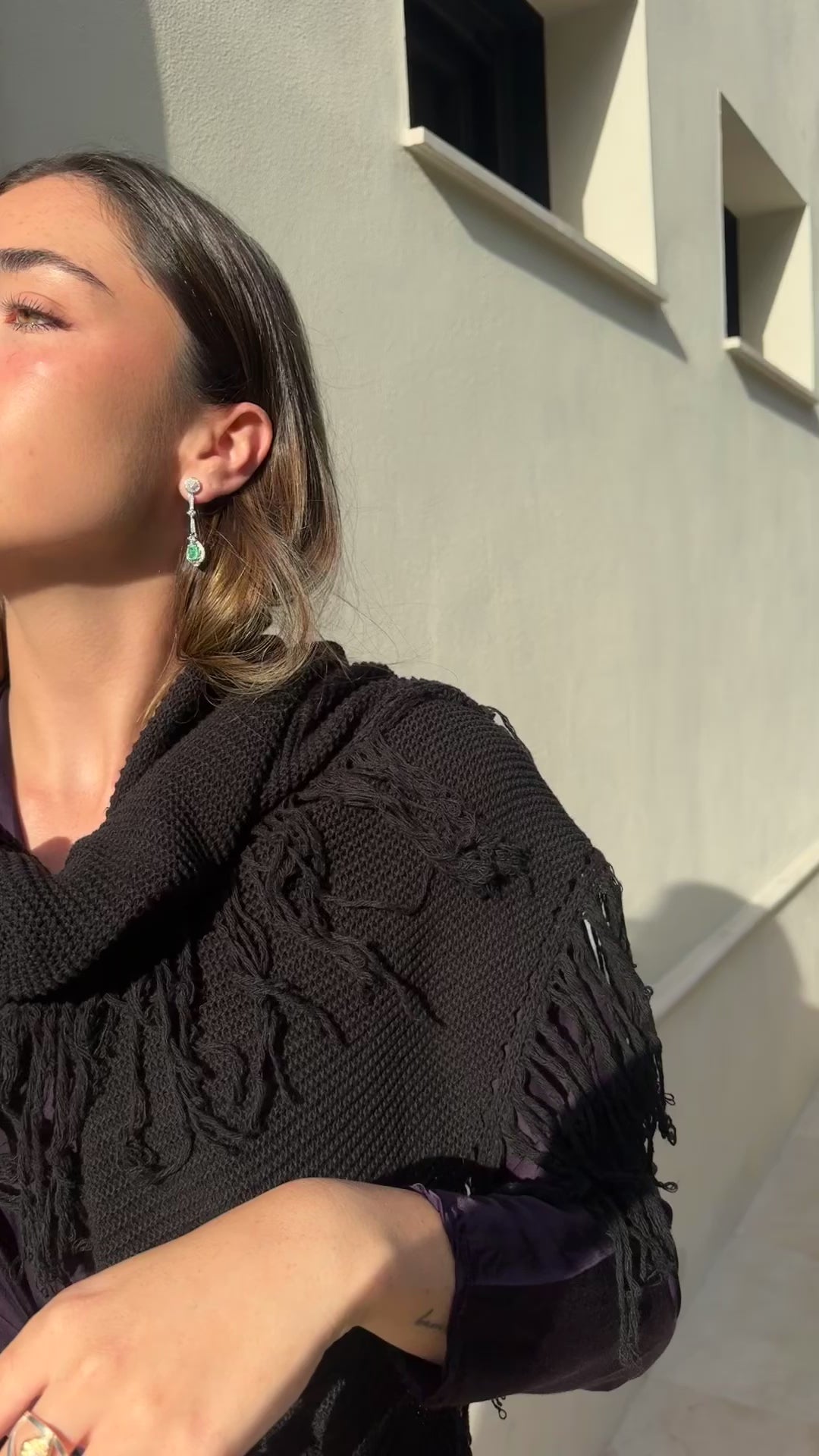 El doblete esmeralda, enmarcado por circonitas y plata rodiada, aporta un brillo vibrante y sofisticado. Su silueta alargada estiliza el rostro y captura la luz con cada movimiento.