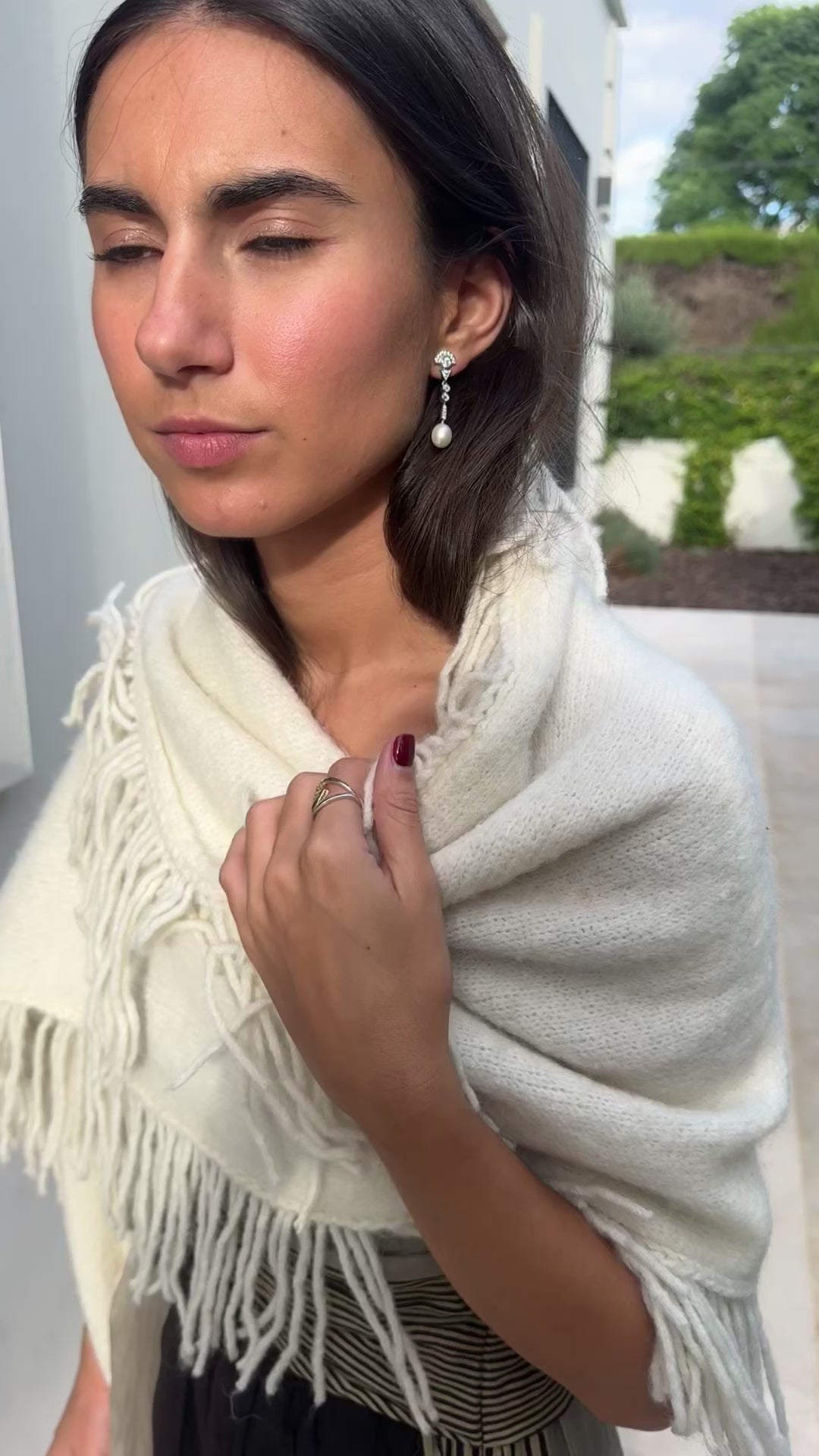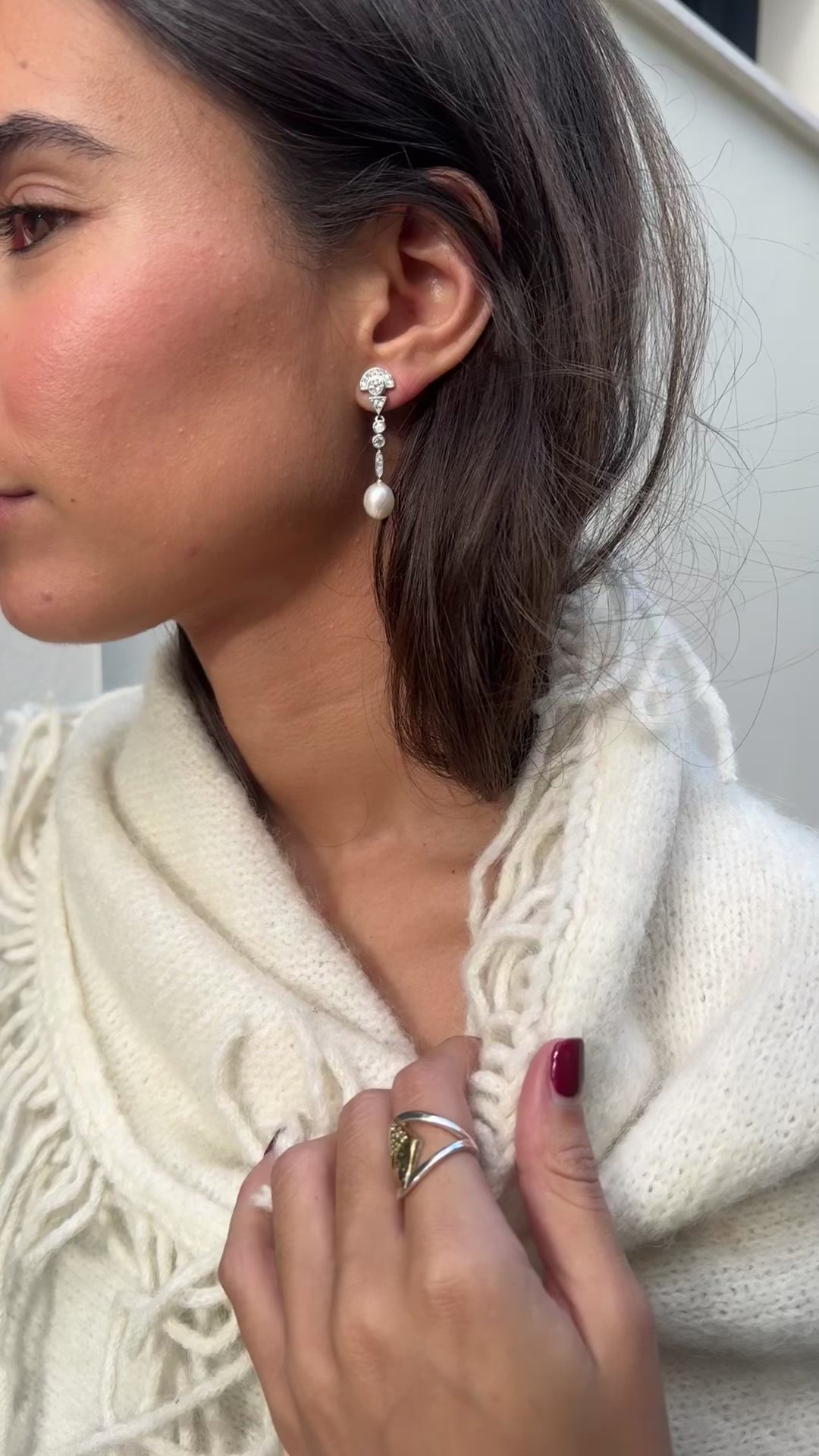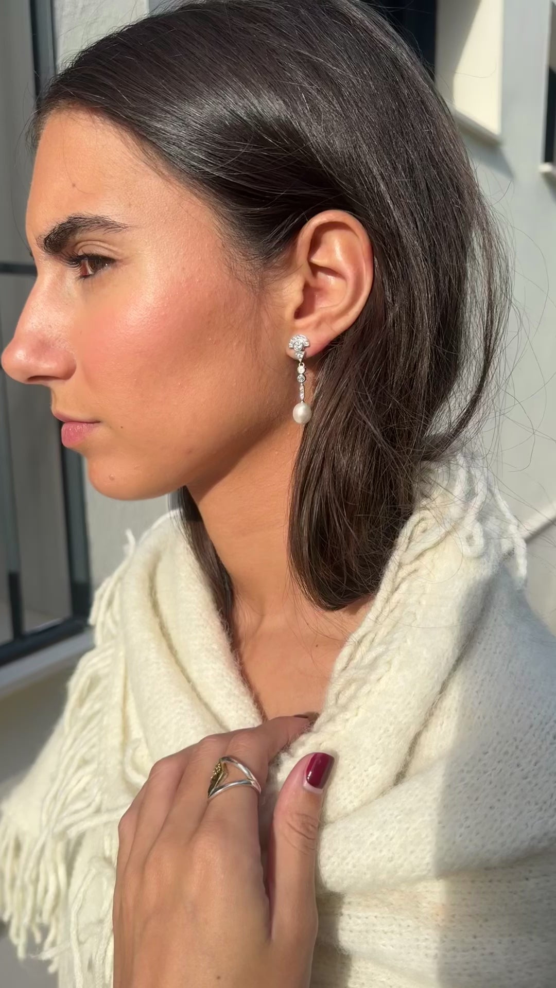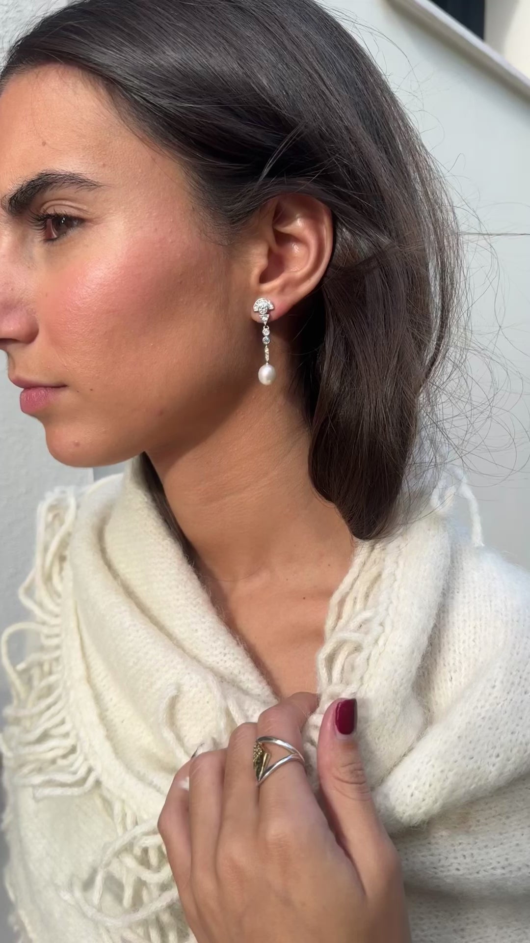 Son pendientes que elevan el rostro sin esfuerzo: estilizan, alargan y acompañan el movimiento con naturalidad. Su estética tiene un ligero aire Art Decó, reconocible en la geometría simple y en la forma en que la luz se distribuye a lo largo de la pieza.